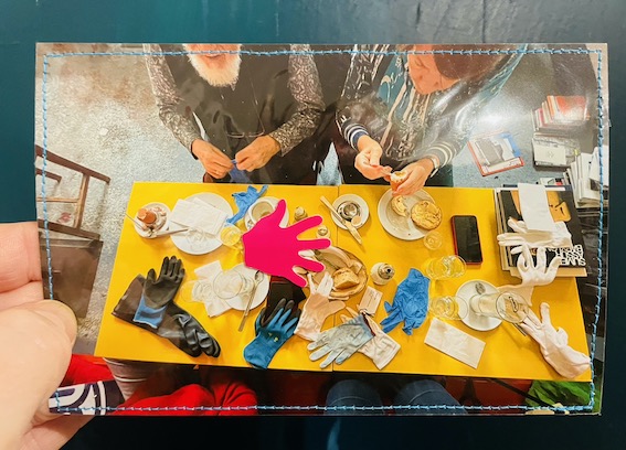 Zum Jahresende sind außerdem die 23 handbedruckten Kissen wieder im Atelier aus der Ausstellung im Herbstsalon 2025 zurück. Mit großer Freude konnte ich beim Abholen aus dem Kunstpalais in Erlangen auch über ein Dutzend ausgefüllter Karten zum Thema „MEINE LETZTEN WORTE“ entgegen nehmen. Sehr berührend, was mir die Besucher und Besucherinnen dort an Gedanken hinterliessen. Und etwas zum Lächeln fand ich unter den Textilobjekten: