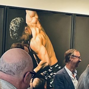 ausstellung-coburg-muenzmeisterhaus-pola-sieverding-arena-2 Vernissagen Gäste vor einem Bild der Künstlerin Pola Sieverding