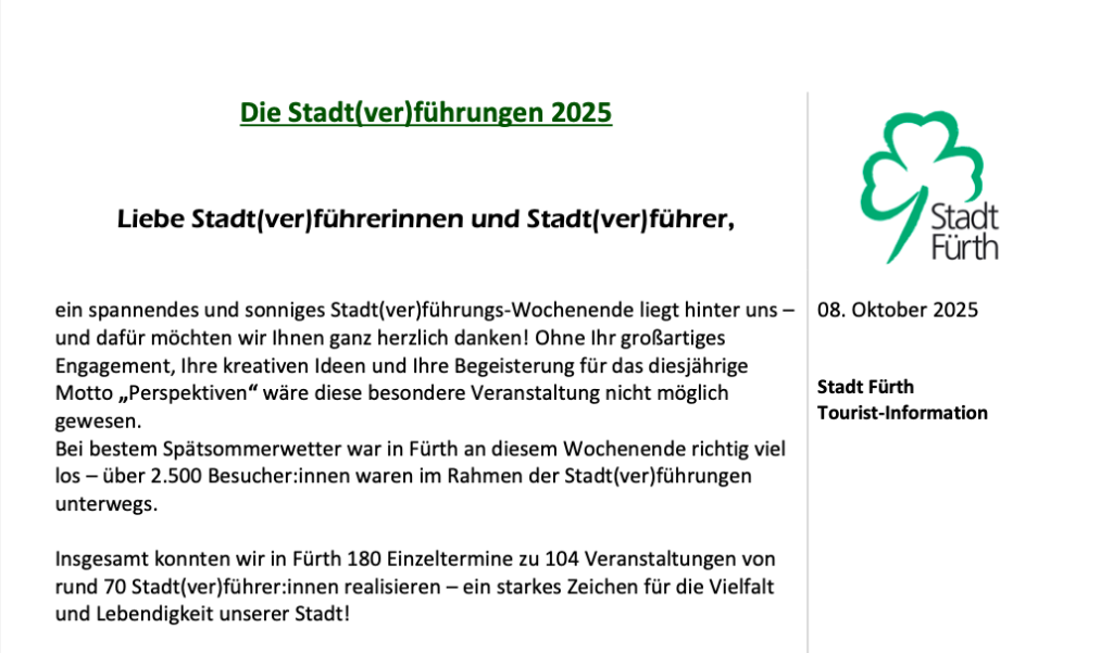 Danke, liebes Team der Fürther Tourist-Information, für das freundliche Schreiben.