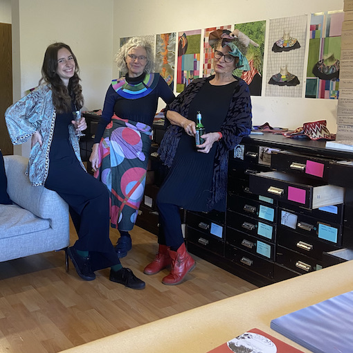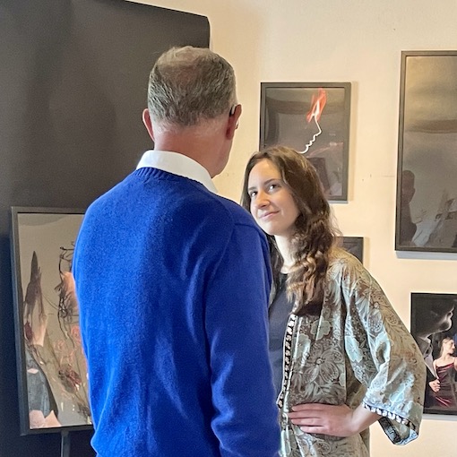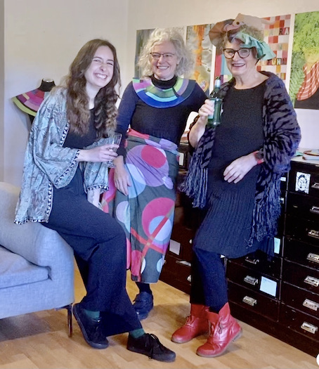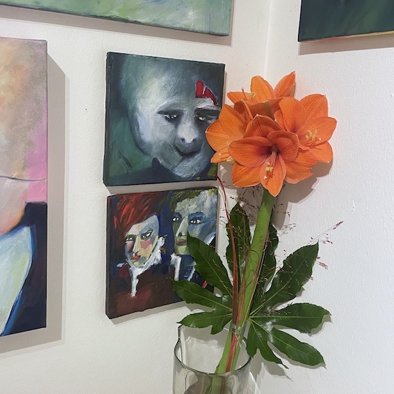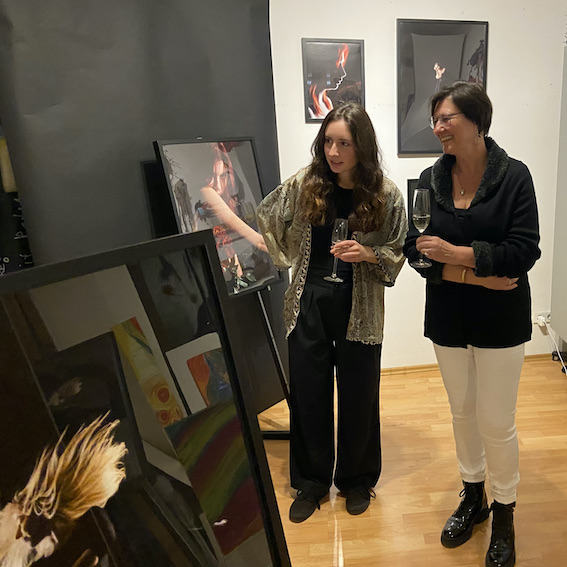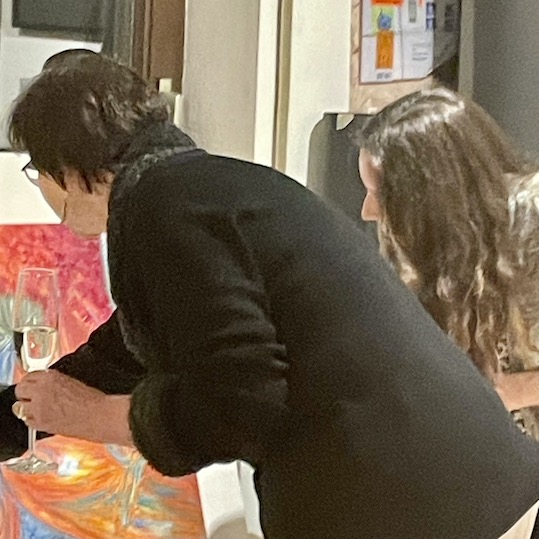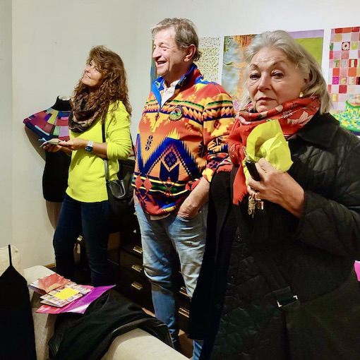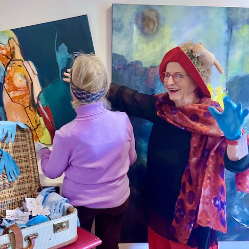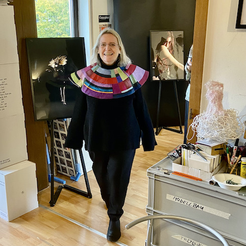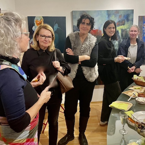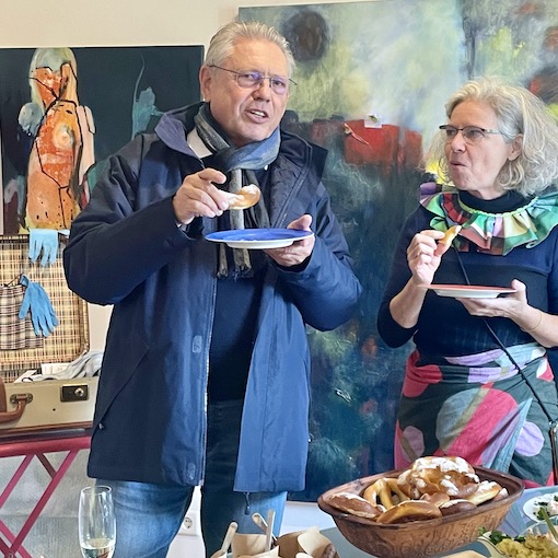 Gespräche entstanden über unsere ganz unterschiedlichen Arbeiten und Arbeitsweisen. Die textilen Kunstkragen von Christiane ten Hoevel wurden ausprobiert, diskutiert und wechselten anschließend die Besitzerinnen, genauso die emotionalen Gemälde von Melissa Osmanovic.