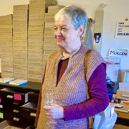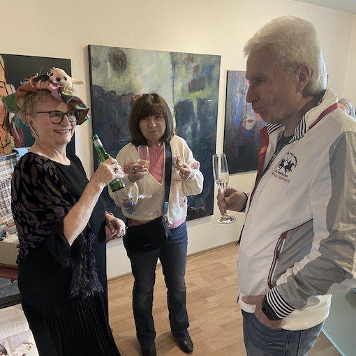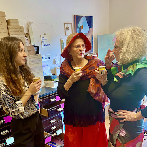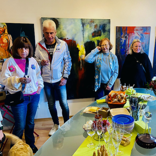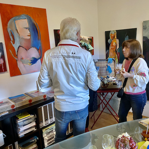 Euer Mut, ein Künstlerinnen – Atelier zu besuchen, das nicht in einem der bekannten Atelierquartiere liegt, sondern in einem ganz „normalen“ Wohnhaus, hat uns besonders gefreut.