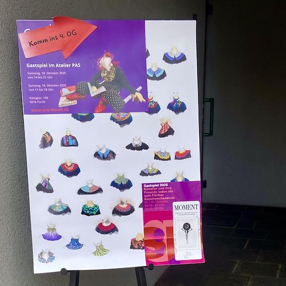 Weil es so schön bunt, fröhlich und unkompliziert war, zeige ich hier einige Eindrücke vom GASTSPIEL 2025, dem inspirierenden Kunstwochenende des Kulturring C in Fürth.