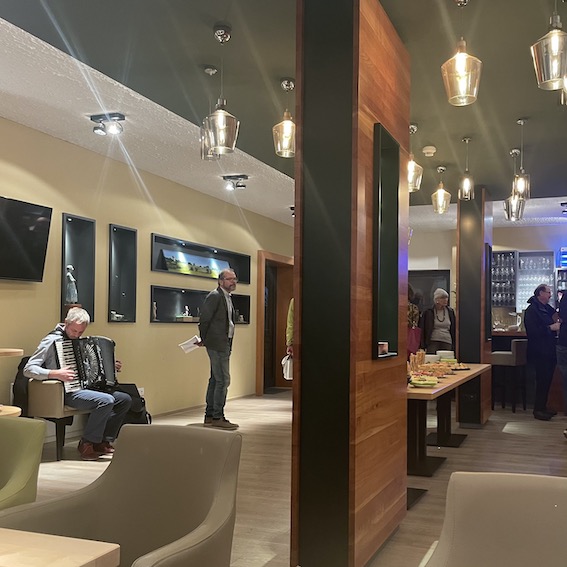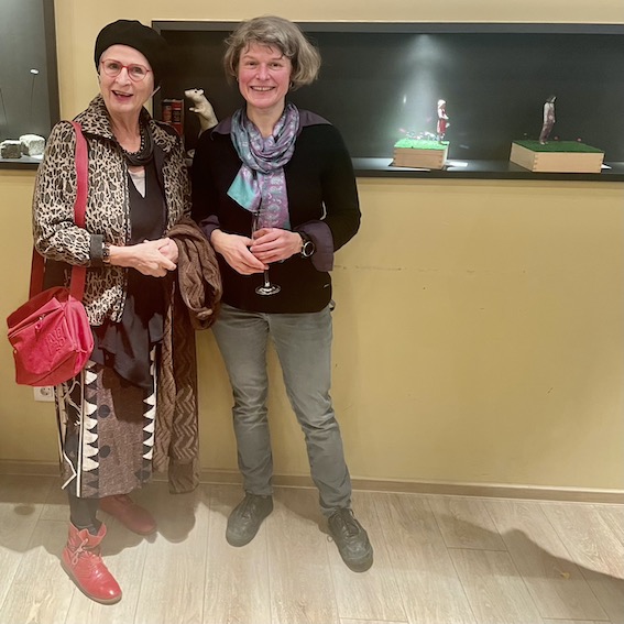 Am frühen Abend besuchten wir Eva Mandok, die in der liebevoll gestalteten Brennerei Peterhof in Ortspitz ihre Arbeiten präsentierte. Eine Vernissage mit viel Atmosphäre: begleitet von den Akkordeonklängen unseres Freundes Max Stadler, Gesprächen und edlen Bränden des Hauses.