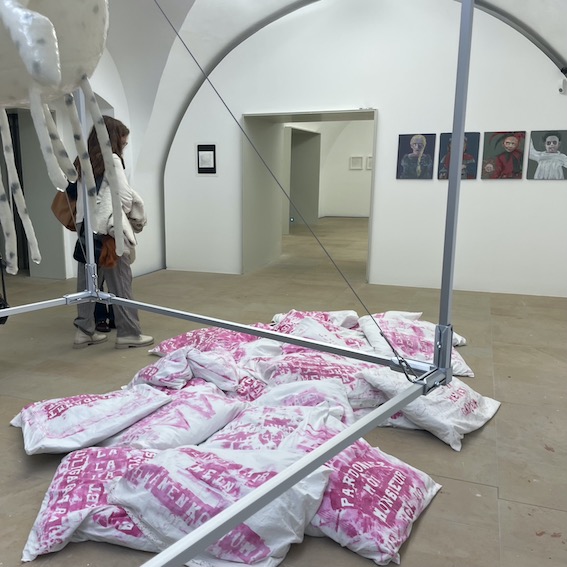Während im Erdgeschoss die Exponate dicht an dicht hingen, herrschte im Untergeschoss eine ruhigere Atmosphäre. Ich habe mich sehr gefreut, dass das Kuratorinnenteam meiner Arbeit „LETZTE WORTE“ dort so viel Raum gegeben hat.