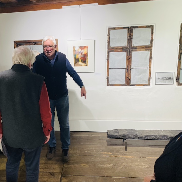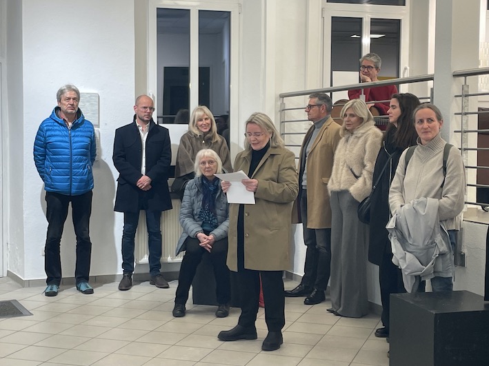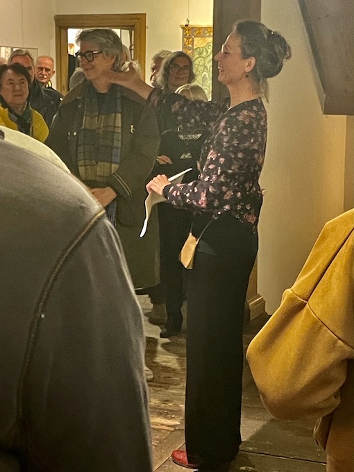 Bevor das Publikum jedoch in ihre leisen Bildwelten eintauchen konnte, bat Kunsthistorikerin Eva Schickler in ihrer Eröffnungsrede alle Anwesenden, die Augen zu schließen. Nun konnte man ihren Worten an einen imaginären Meeresstrand folgen. Ab und zu blinzelte jemand, ab und zu huschte ein Lächeln über Gesichter. (Ja, ich habe es gesehen, denn schließlich hatte mich Helga gebeten, an dem Abend zu fotografieren).