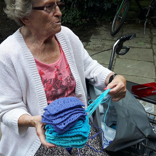 Gemeinsam mit Andrea Himmelstoß vom Nürnberger Nadelglück entsteht, gleichsam im Tun, die Idee zu 1517 gehäkelten Quadraten, sog. Granny Squares. Als Tag der Fertigstellung legen wir den Reformationstag fest, den 31.10.2017. Aus den genau abgezählten, meist blauen Quadraten, fertigen wir, dank der Unterstützung von Nicole Thomas, bis zum Jahresende mehrere Patchwork Decken, die wir den United Kiltrunners e.V. in Fürth spenden.