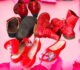 Zu meiner großen Überraschung brachte sie mir ein fantasievoll gestaltetes Päckchen mit, in dem sich ebenfalls rote Schuhe befanden. Dieses Mal jedoch nicht zum anziehen, sondern als leuchtende Bildcollagen.